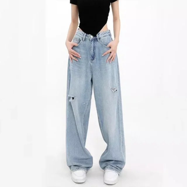 High-Waisted Vintage Loose Denim Wide-Leg Jeans – Y2K Fashion Baggy Trousers
