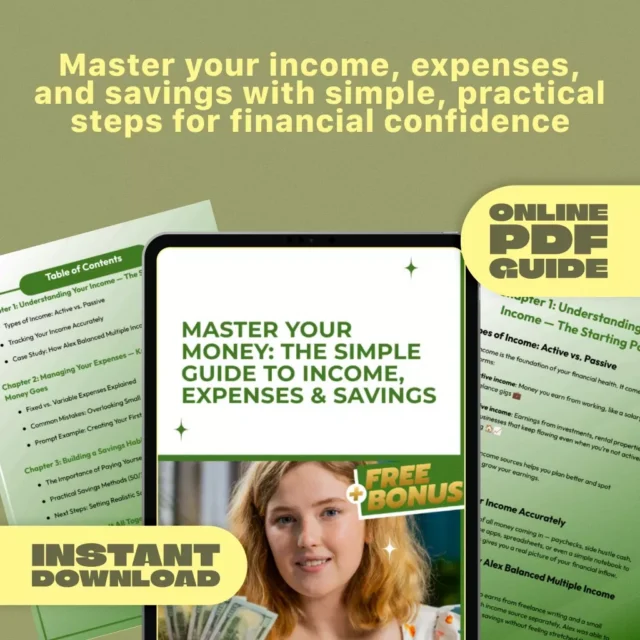 Why wait? Get your digital copy of Master Your Money: The Simple Guide to Income, Expenses & Savings today and take the first step toward confident, stress-free money management. It’s time to understand your income, track every expense, and build a savings habit that truly sticks.