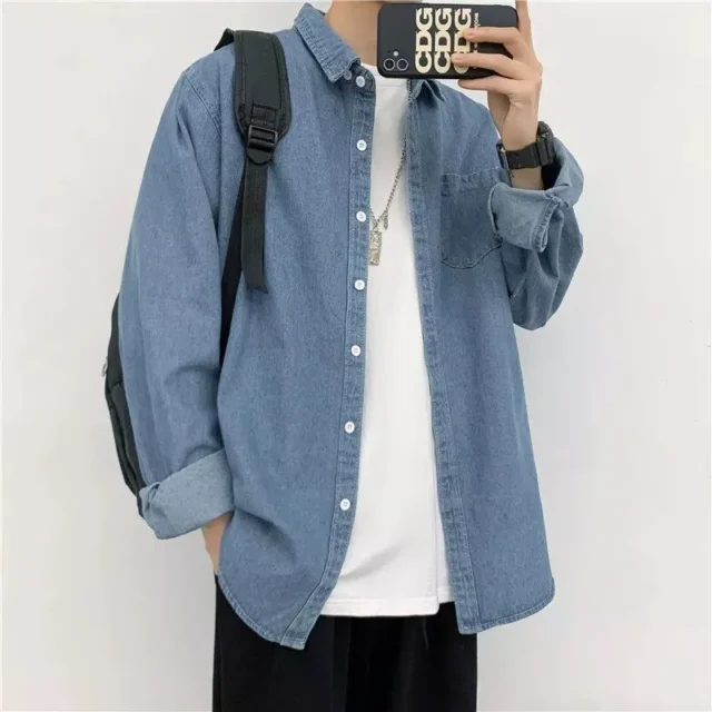 Elevate your style game with our Mens Denim Shirt, a perfect addition to your wardrobe this spring and autumn. This trendy Harajuku-inspired long-sleeve top combines vintage aesthetics with modern streetwear, offering both style and comfort in one.
