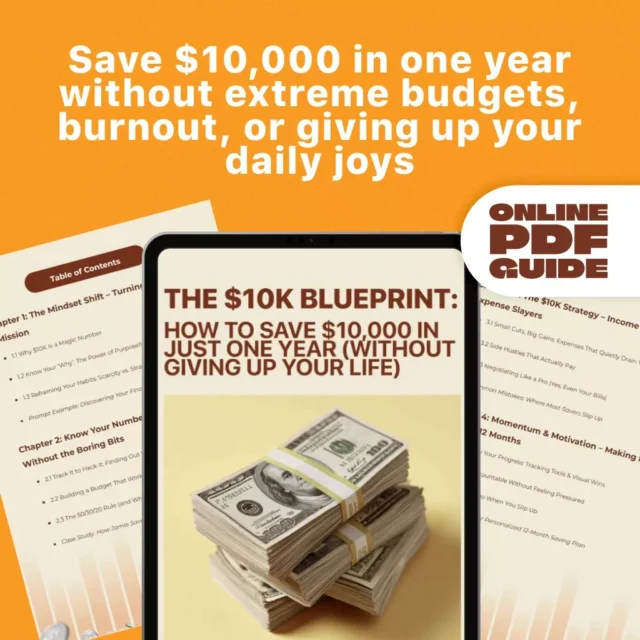Ready to stop guessing and start saving? Download The $10K Blueprint: How to Save $10,000 in Just One Year (Without Giving Up Your Life) now and take your first confident step toward a financially freer future. It’s not just a guide—it’s your plan, your strategy, your year. Don’t wait. Your $10K starts here.